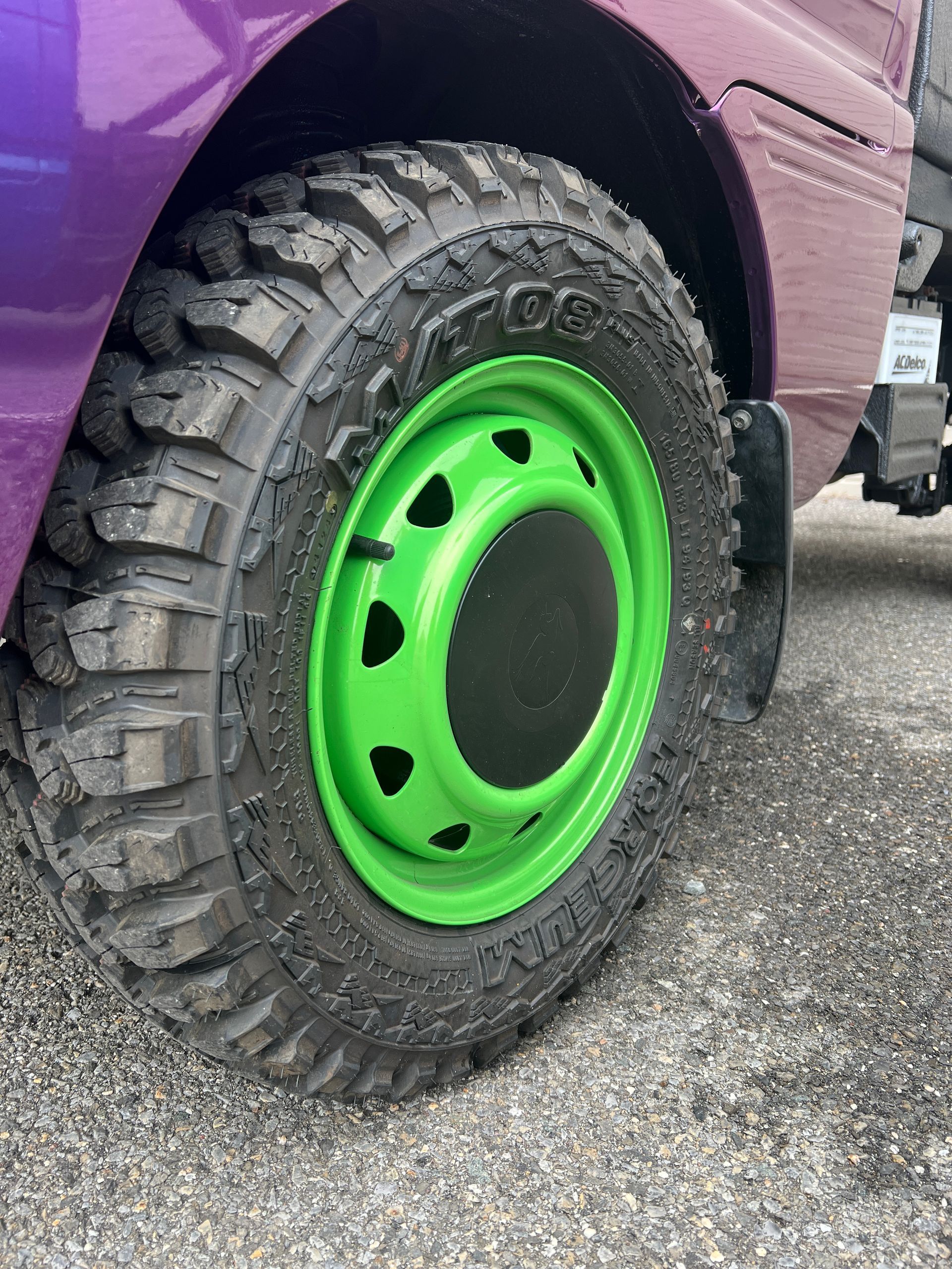 - Professionally Wrapped, 13" Powder Coated Steel Wheels and Tire Package, Bed Liner frame and entire bed, inside and out.